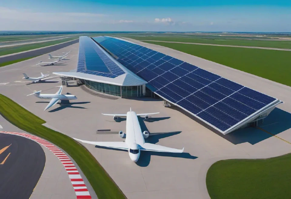1. Futuristic passenger aircraft with transparent OLED windows showing dynamic landscapes, carbon fiber reinforced polymer body for lightweight efficiency, solar panel wings for sustainable energy – HQ, 8K. (Elaborate atmosphere:1.4)