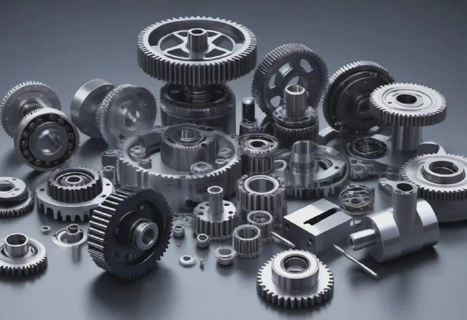A detailed 3D render of a gearbox assembly including gears, shafts, and bearings, set in a CAD environment, 4K resolution.